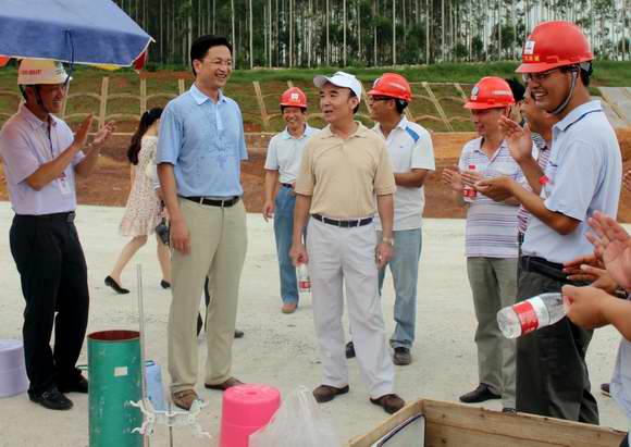在施工現(xiàn)場(chǎng),黃華寬書(shū)記認(rèn)真聽(tīng)取了項(xiàng)目建設(shè)情況的匯報(bào),對(duì)欽崇高速公路建設(shè)總體情況表示滿(mǎn)意。他強(qiáng)調(diào),欽崇高速公路是崇左乃至東盟通往北部灣經(jīng)濟(jì)區(qū)的重要通道,各單位、各部門(mén)一是要在確保質(zhì)量和安全前提下,加快欽崇高速公路項(xiàng)目建設(shè)步伐,早日完成通車(chē)目標(biāo)任務(wù),促進(jìn)陸路東盟經(jīng)濟(jì)產(chǎn)業(yè)快速發(fā)展;二是要在建設(shè)好欽崇高速公路項(xiàng)目的同時(shí),科學(xué)規(guī)劃,合理布局,完善其他各項(xiàng)基礎(chǔ)設(shè)施建設(shè);三是要為崇左至靖西高速公路這條西南大通道做好充分的準(zhǔn)備工作,力保項(xiàng)目順利開(kāi)工建設(shè)。