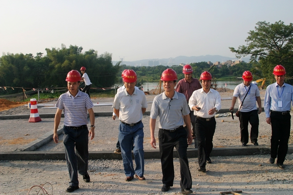 10月17日,集團公司朱堅和董事長、李定倫總經(jīng)理等領(lǐng)導(dǎo)深入百色片區(qū)BT項目施工現(xiàn)場,親切慰問奮戰(zhàn)在旱季施工一線的員工們,了解項目施工進度情況,為解決項目存在的困難提出了寶貴的意見與建議。針對目前時間緊迫,任務(wù)艱巨的施工形勢,集團領(lǐng)導(dǎo)還積極鼓勵百色片區(qū)各項目要迎難而上,全面奪取施工勝利。