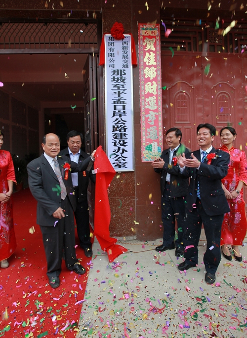 集團(tuán)公司朱堅(jiān)和董事長在儀式上鄭重承諾:廣西新發(fā)展交通集團(tuán)一定秉承“合作共贏,追求卓越,創(chuàng)新發(fā)展”的理念,認(rèn)真貫徹“百年大計(jì),質(zhì)量第一”的方針,調(diào)集精銳之師,配備精良設(shè)備,集中優(yōu)秀人才,精誠團(tuán)結(jié),嚴(yán)密組織,規(guī)范管理,科學(xué)施工,確保項(xiàng)目建設(shè)按期、優(yōu)質(zhì)、安全地順利實(shí)施,把公路路網(wǎng)項(xiàng)目建設(shè)成一個(gè)優(yōu)質(zhì)、安全、廉潔的示范工程,向社會(huì)各界和各族人民交出一份滿意的答卷,向自治區(qū)第十次黨代會(huì)獻(xiàn)上一份厚禮!