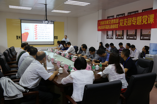 集團(tuán)公司總工程師覃炳賢參加專題黨課并做發(fā)言,就如何開展好項目建設(shè)工作提出了具體要求,提出要按照“建設(shè)綠色高速,共享長壽密碼”的理念,將賀巴馬高速建設(shè)成一條旅游路、一條探尋長壽之路。