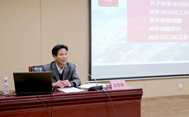 朱堅(jiān)和在講話(huà)指出,2017年乃至整個(gè)“十三五”時(shí)期,集團(tuán)公司正處于補(bǔ)齊短板、強(qiáng)基固本、結(jié)構(gòu)調(diào)整、提質(zhì)增效、深化改革、創(chuàng)新驅(qū)動(dòng)、轉(zhuǎn)型升級(jí)、二次創(chuàng)業(yè)的黃金時(shí)期。我們要堅(jiān)持穩(wěn)中求進(jìn)工作總基調(diào),堅(jiān)持牢固樹(shù)立新發(fā)展理念,堅(jiān)持以提高發(fā)展質(zhì)量和效益為中心,緊緊圍繞“再造一個(gè)新發(fā)展”宏偉目標(biāo),奮力擔(dān)當(dāng)“開(kāi)拓更大平臺(tái),發(fā)揮更大作用,承擔(dān)更大責(zé)任”新使命,堅(jiān)持“一二三四”新戰(zhàn)略,堅(jiān)持“一轉(zhuǎn)二提三攻堅(jiān)”新要求,繼續(xù)做好“三篇文章”,全面加強(qiáng)黨的建設(shè),全力推進(jìn)“轉(zhuǎn)型升級(jí)、二次創(chuàng)業(yè)”,努力成為自治區(qū)黨委政府最可信賴(lài)的依靠力量。