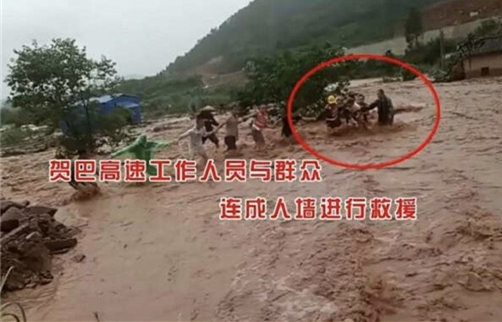 7月3日,廣西桂北地區(qū)連日遭受暴雨侵襲,鐘山至昭平高速公路項目多個場站被沖毀,駐地被洪水圍困,項目部立即啟動應急救援預案,積極開展自救工作。在得知附近的源頭鎮(zhèn)群眾被洪水圍困后,項目工區(qū)經(jīng)理鄒穎林立刻放下整理好的物資,與其他員工一起沖進洪水中拯救鄉(xiāng)民。項目部員工通過手拉手搭建起了生命通道,先后4次下水施救,最終成功轉(zhuǎn)移30多名受困群眾,其中包括5名小孩。