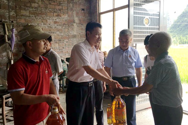 韋云忠一行還到相堯村在建的村文化活動中心實地查看,對村文化活動中心規(guī)劃及集團公司幫扶建設村文化樓等工作表示肯定。韋云忠等領導還分別深入相堯村3戶貧困戶代表進行慰問,了解貧困戶生產生活情況。