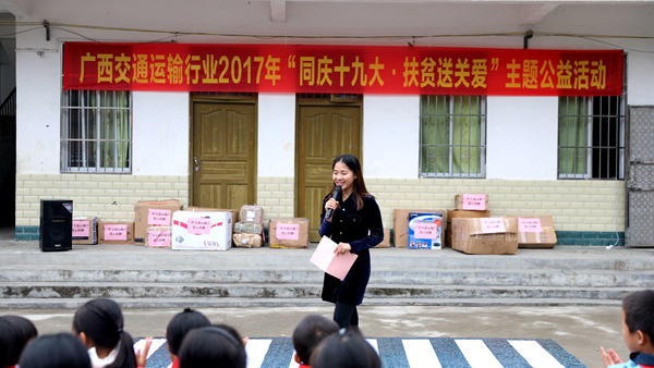 11月10日,集團公司團委組織青年團干赴羅城縣東門鎮(zhèn)德音村小學(xué)參加共青團廣西壯族自治區(qū)交通運輸廳委員會組織的廣西交通運輸行業(yè)2017年“同慶十九大•扶貧送關(guān)愛”主題公益活動。