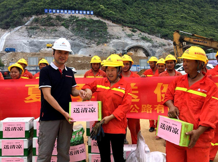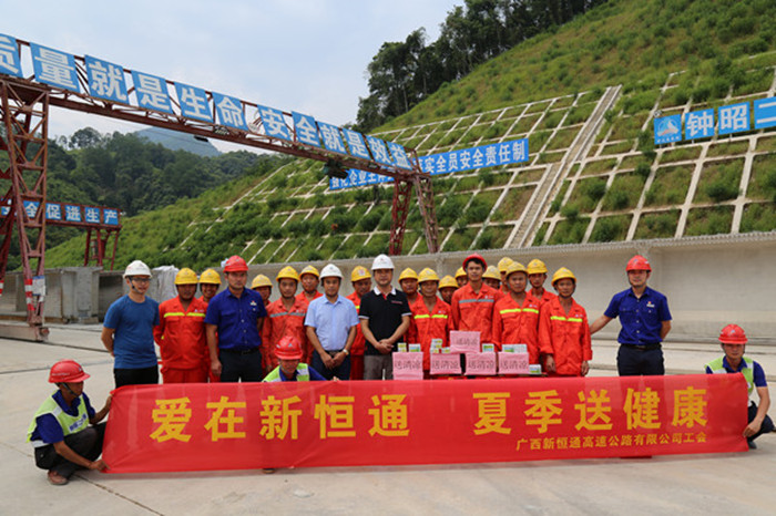 8月中旬,新恒通公司到賀巴高速、融河高速開展“送清涼”慰問活動(dòng),在炎炎夏日給一線的職工送上絲絲涼意與關(guān)懷。