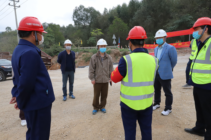 當天上午,周北一行深入?yún)锹÷讽椖拷ㄔO(shè)指揮部、施工現(xiàn)場、駐地及卡控點,聽取了吳隆路指揮部及各參建單位負責人相關(guān)工作匯報,詳細檢查復(fù)工復(fù)產(chǎn)后施工現(xiàn)場安全生產(chǎn)、人員到場施工和疫情防控情況。
